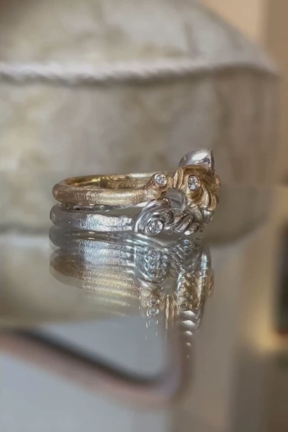 Alle dele fås i ren rødguld, ren hvidguld eller mix af begge som på billedet.